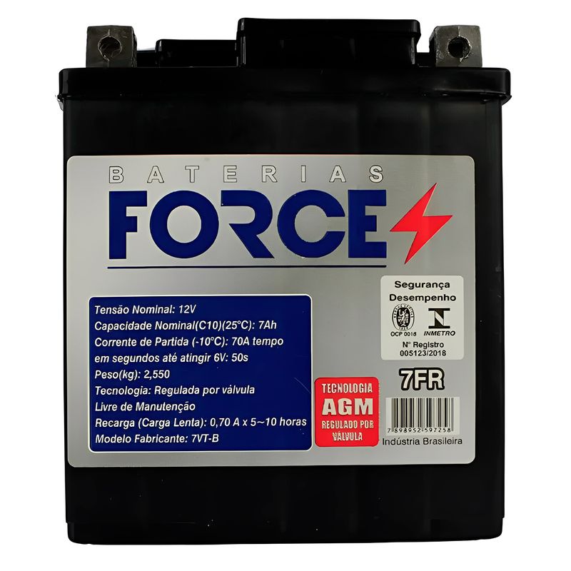 Bateria Nexforce YTX7L-BS 7FR-7VT-B Twister 250 Fazer 250