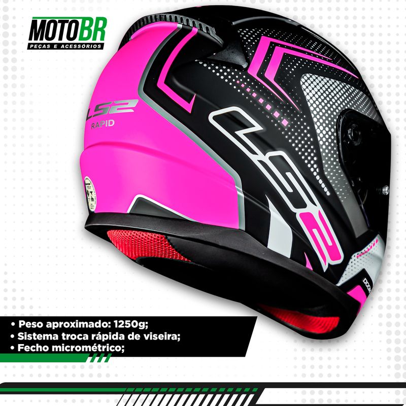 Capacete Original LS2 FF353 Rapid Doom Fosco Preto Rosa