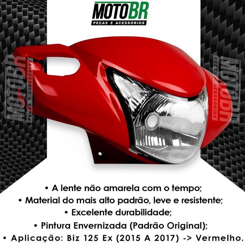 Frente Farol Completo Biz 125 Ex 2015 A 2017 Vermelho Pérola